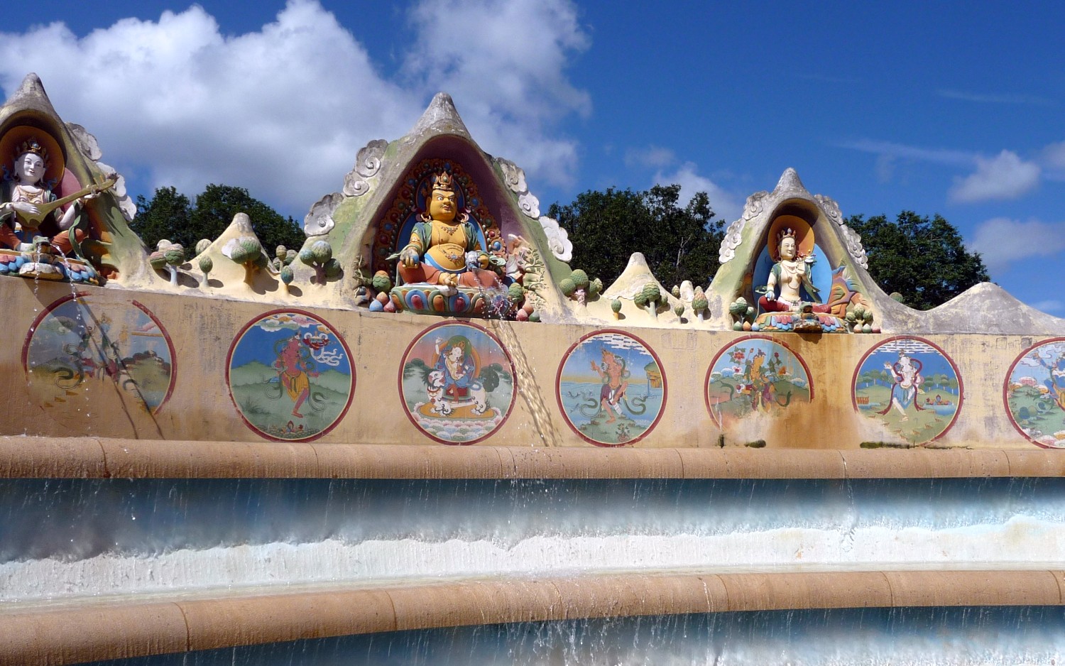 boven de waterpartij onder andere een boedabeeld
